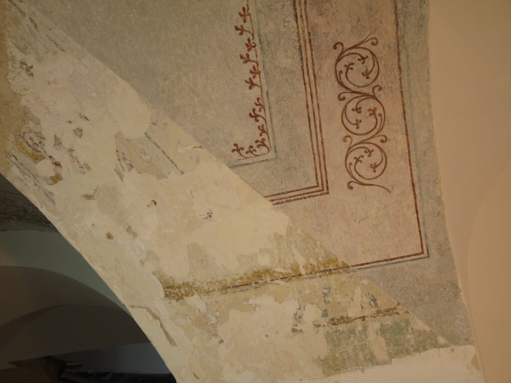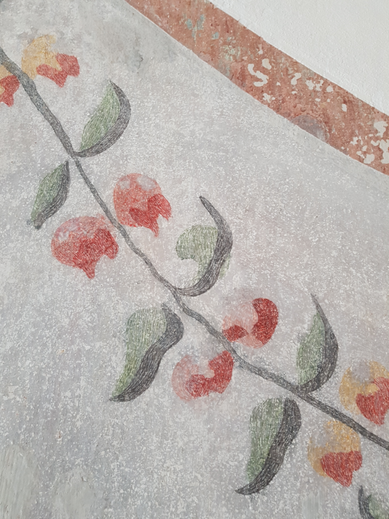 Vor jedem Eingriff analysiere und archiviere ich den Zustand der Wandmalerei, um sowohl die Ursprungszustände als auch die durchgeführten Maßnahmen nachvollziehbar zu halten. Manchmal reicht ein kleiner Ausschnitt, um Fragmente und Details historischen Kunsthandwerks zu dokumentieren.